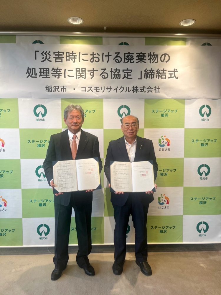 令和7年9月29日、稲沢市役所市長公室にて、当社は稲沢市と「災害時における廃棄物の処理等に関する協定」を締結いたしました。